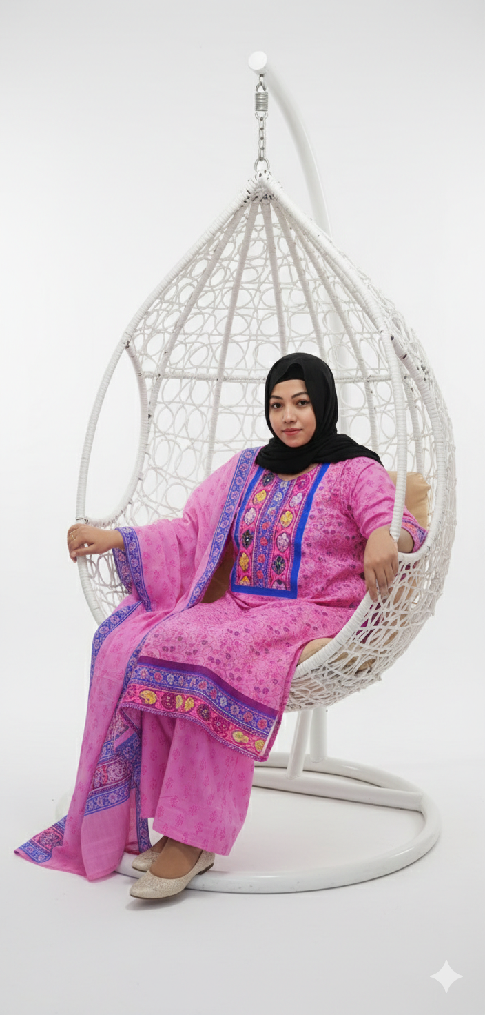 1.Embroidered Kameez 2.Matching printed trouser 3.Designer printed dupatta ** Comfortable for all day wear and suitable for both casual and festive occasionsThis